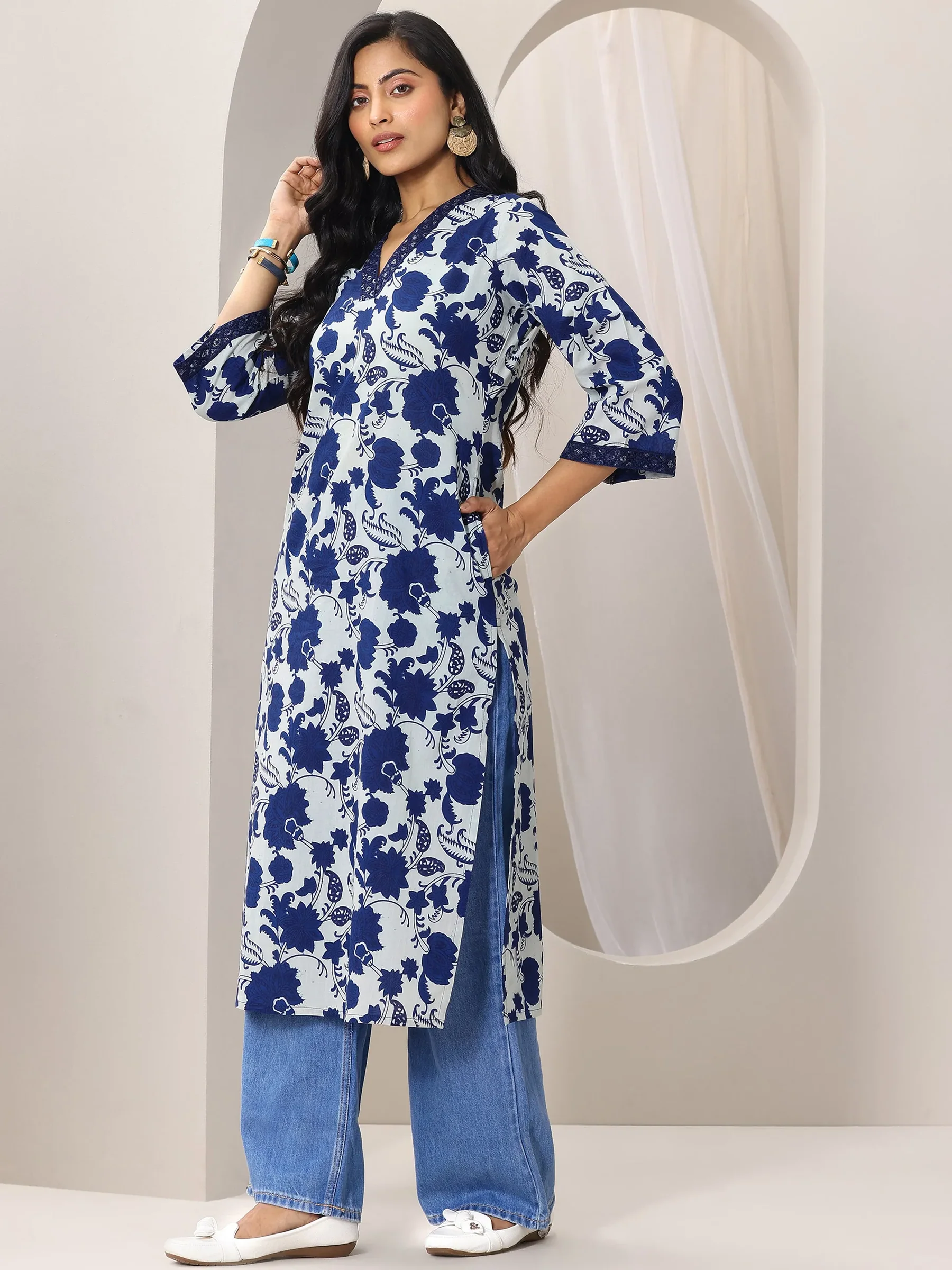 Indigo Printed Cotton Straight Kurta