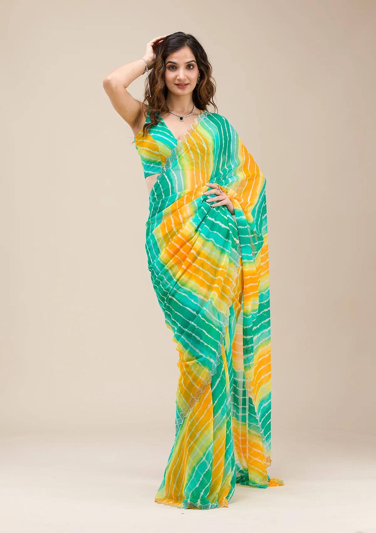 Rama Green Stonework Georgette Saree
