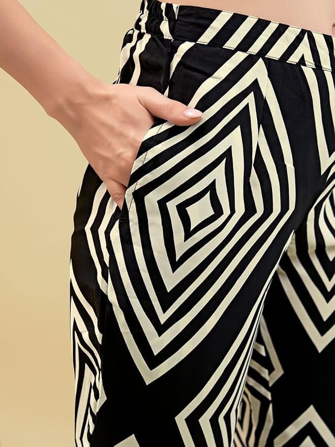 Rayon Women’s Printed Kaftan Kurta Pant Set